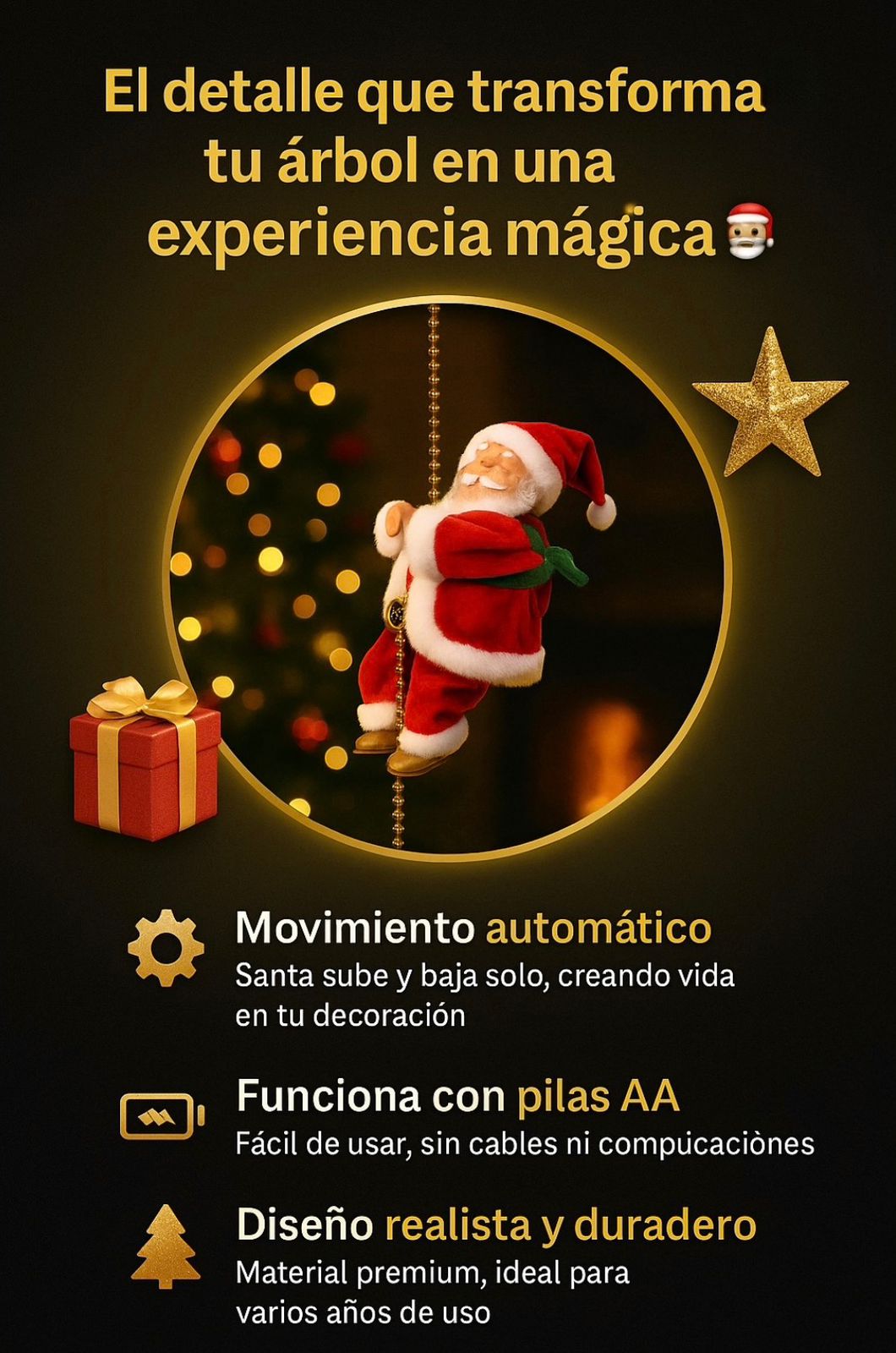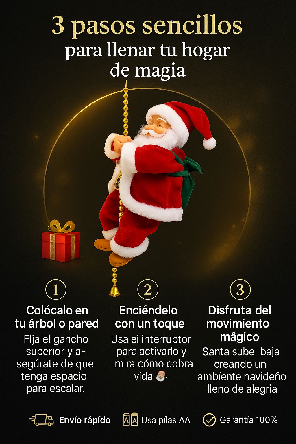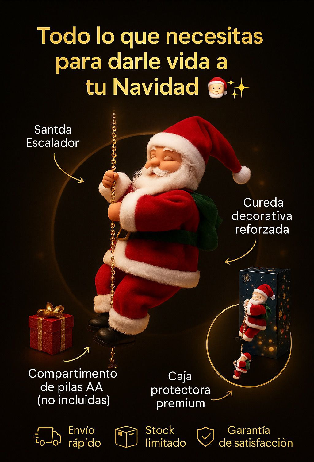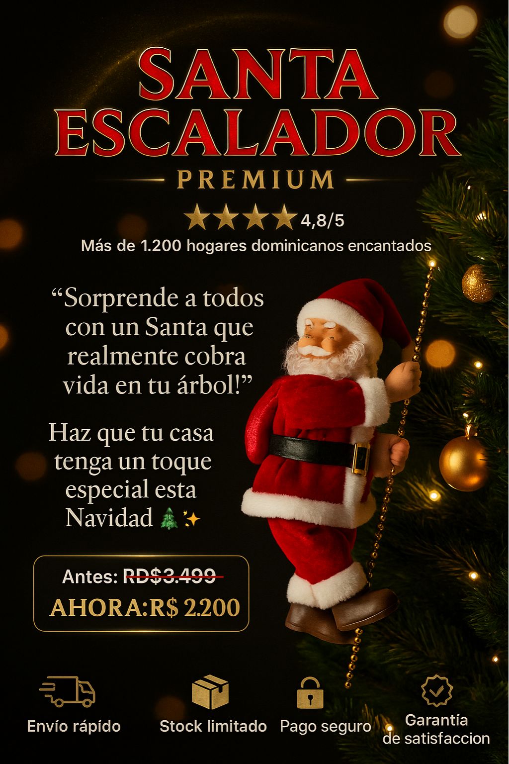 "¡Divino! 🎅 Lo puse en la fachada y todos los vecinos se detienen a mirarlo 😍. El Santa sube con sus luces y se ve mágico de noche. ¡Vale cada peso!"